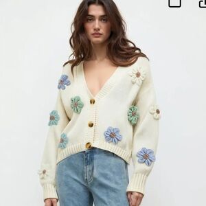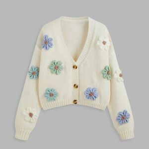 CIDER V-NECK BUTTON FLOWER CARDIGAN