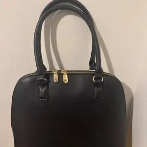 - Exterior color: black, Interior color: burgundy, Gold colored hardware