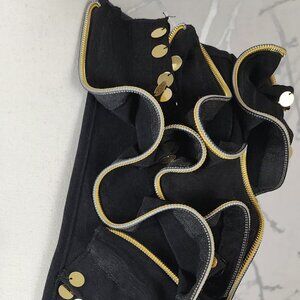 Simon Chang Artsy Ruffle Zipper Open Front Cropped Vest