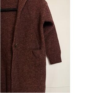 UNIQLO Women's Long Cardigan Sweater Hooded Burgundy Marled Size S