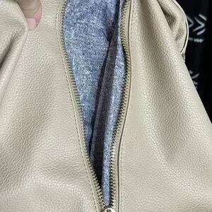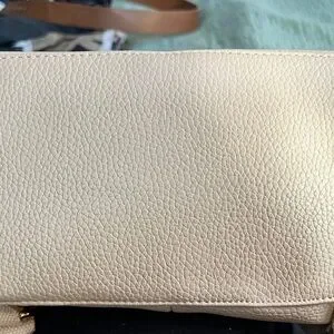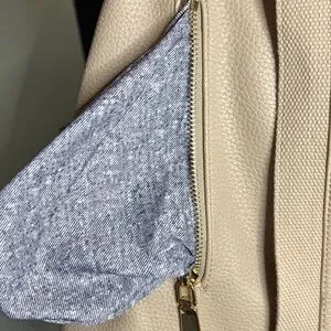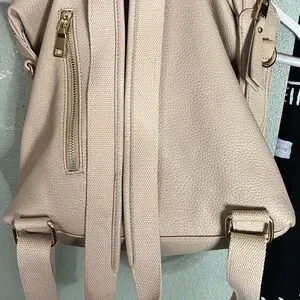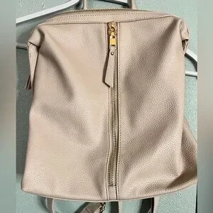 Urban Expressions Kenzie backpack. Pebbled vegan leather in a natural shade. One small pen mark on front (I didn’t try to get out) and other tiny flaw as pictured by back handles.