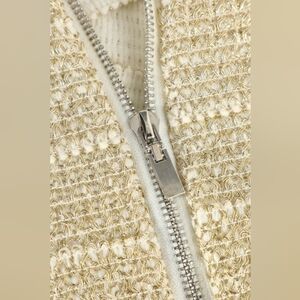Add a touch of elegance to your vacation wardrobe with the Micas Zip Back Crop Bandage Tank Top in size Large. This chic top features a stylish zip-back design and is made from 100% polyester, offering both comfort and a mid-stretch fit.