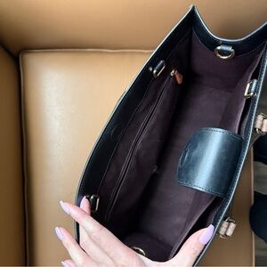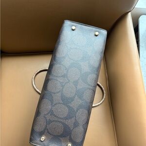 Coach Maggie Tote Bag In Blocked Signature Canvas, missing longer handles, key fob, and some minor wear to the interior. Sold as is! Smoke free home. Signature coated canvas and smooth leather