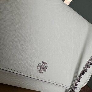 NWT! NEW! Tory Burch Wallet On Chain Crossbody WOC Leather Women Meadow Mist