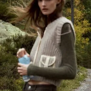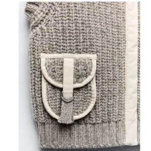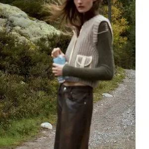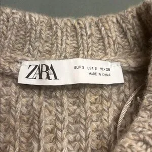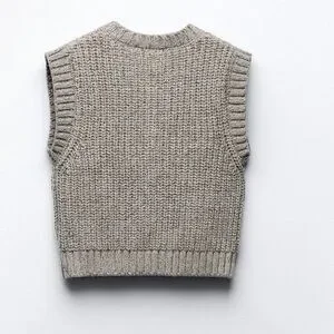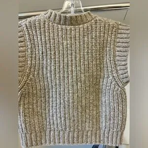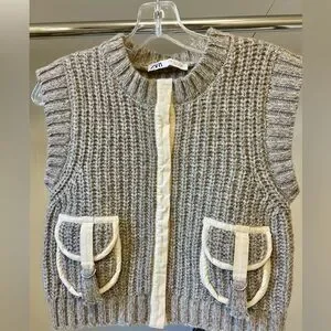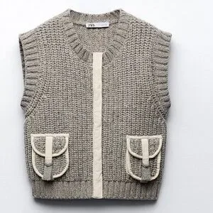 Zara Chunky Knit Round Neck Utility Pocket Beige Marl Gray Sweater Vest Size S