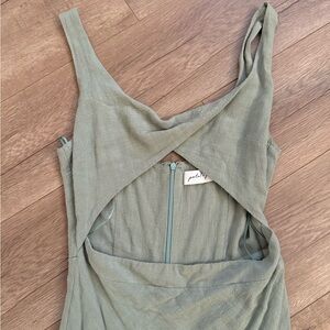 Chic backless design. Soft sage color. Perfect for stylish outings.