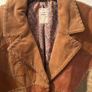 We The Free FP Leather Flowers On The Wall Patch Stitch Suede Lined Jacket