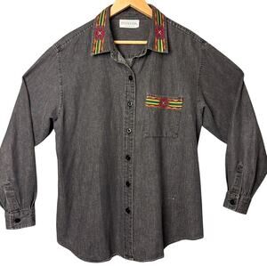 Vintage Pendleton Knockabout Shirt Button Up Tribal Embroidery Trim Chambray