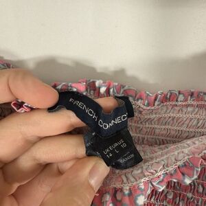 French Connection Blouse Women's 10 Pink Floral Smocked Square Neck Short Sleeve