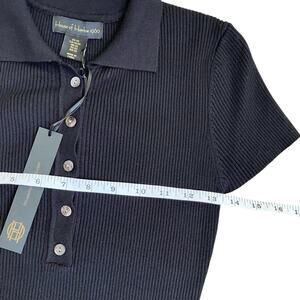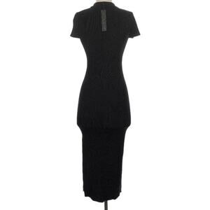 House of Harlow 1960 Sz XS NWT Ribbed Knit Polo Dress Midi Short Sleeve Black
