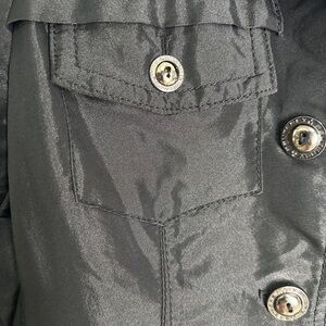 Sophisticated black blazer with button closure. Ideal for versatile styling.
