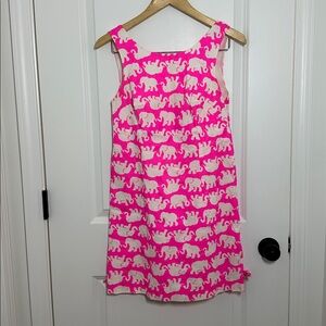 Lilly Pulitzer Women’s Elephant Sheath Dress Neon Pink/ White 4