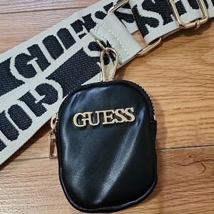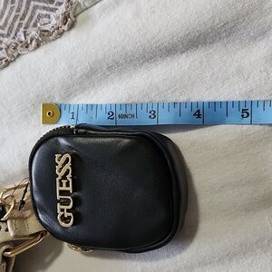 The Guess Black and White Key Coin Holder is a stylish accessory designed to keep your essentials secure. Featuring a bold black and white pattern, this holder is perfect for carrying coin. Its durable construction ensures longevity, while the sleek design adds a touch of elegance to your everyday carry. Attach the strap to your favorite clutch.