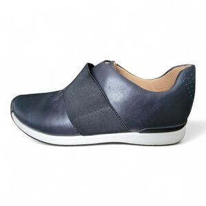 Vionic Codie Women's Leather Sneaker Slip On Black 8 Elastic Band Comfort Casual