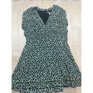 This Derek Lam 10 Crosby dress is a stylish option for women in size 20, featuring a flattering A-line silhouette with a V-neckline and grommet detail in a beautiful green color. Made from a luxurious silk blend material, the dress is adorned with a floral pattern and ruffle accents, adding a touch of sophistication. The short sleeves and zip closure make it easy to wear, while the lining ensures comfort and quality. Perfect for various occasions like travel, parties, or casual outings, this dress combines elegance and modern style effortlessly.