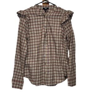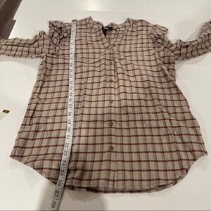 Paige Jenelle Ruffle Shoulders Plaid Long Sleeve Button Down Shirt Size M