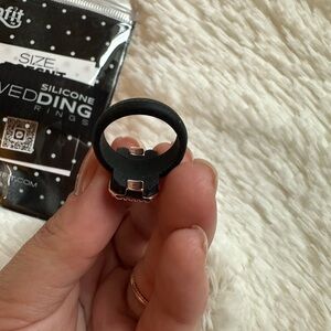 New- Rinfit Emerald Silicone Ring with metal frame & CZ stones, color: black and rose gold, size 7