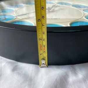 The Sterling & Noble Clock Company Chemical Elements Wall Clock is a 15" round quartz-powered clock featuring a sleek black, blue, or cream color scheme. This hanging wall clock, suitable for adults' living room or home office/study. Great for a classroom. With its modern design and battery-powered operation, this clock adds a touch of style and functionality to any space. This is made of durable plastic and has some weight to it. This has one small area when the black is rubbed off. This is pictured. Get this unique clock today.