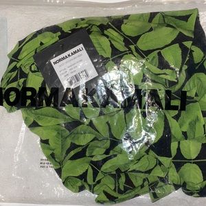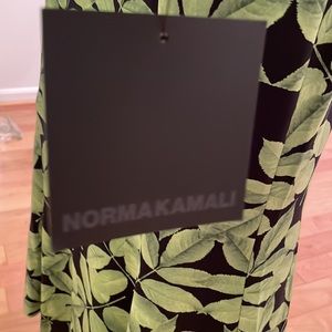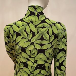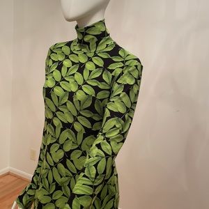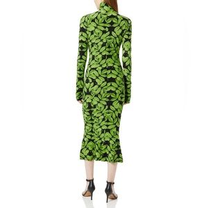 Norma Kamali Green Floral Long Sleeve Turtle Fishtail Dress to Midcalf XS NWT
