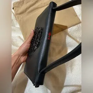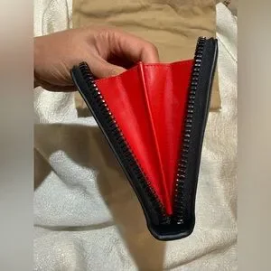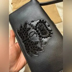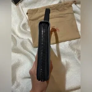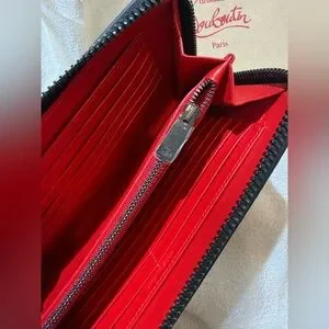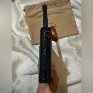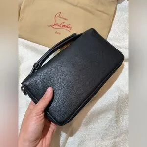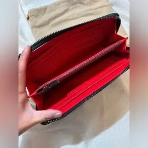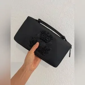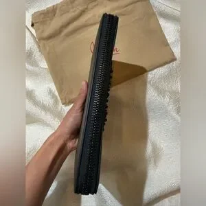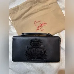 NEW Christian Louboutin Panettone Studs Logo Black Purse Zip Clutch Big Wallet