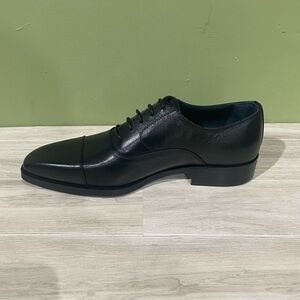 Elevate your style with these classic black men's dress shoes. Perfect for formal occasions, these shoes offer both elegance and comfort. New in box made in Italy leather calf captoe Oxford wooden/rubber sole