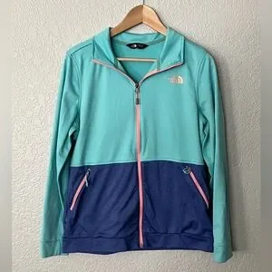 The North Face Aqua and Pink Zip-Up Jacket size large