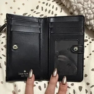 Elegant black wallet with textured finish. Compact and stylish. Ideal for essentials.