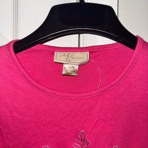 Brand new M&C Sportswear women's long sleeve T-shirt in vibrant hot pink. Features a striking silver sequin snowflake with fern-like details, perfect for winter flair. Size Large offers a comfy, relaxed fit ideal for casual or layered wear. Made from soft cotton-blend fabric. NWT, ready to ship!