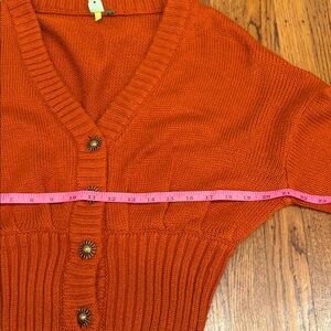 🌞 Farm Rio Orange Chunky Bubble Knit Cardigan • Small • Gold Sun Buttons