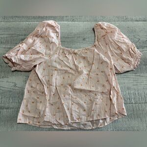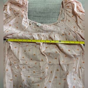 Ana Floral Print Smocked Square Neck Blouse Top Size Medium