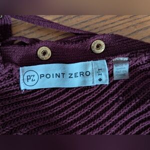 Point Zero Burgundy V-Neck Sweater with Gold Buttons - Women's Medium
