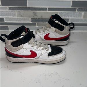 Kids Nike Borough Mid 2 kids size 11c White/Black/Red. Used condition.