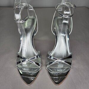 Metallic Cushioned Strappy Sleek Elegant Comfortable Evening Shiny Dressy Chic Party Formal Statement Modern