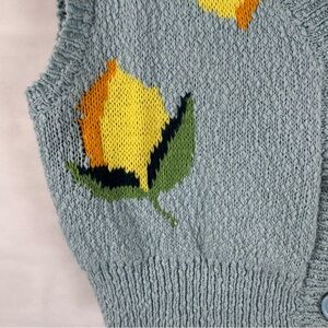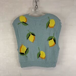 anthropologie vest, maeve sweater vest, lemon print sweater, fruit motif knit, cottagecore vest, sleeveless cardigan, spring knit top