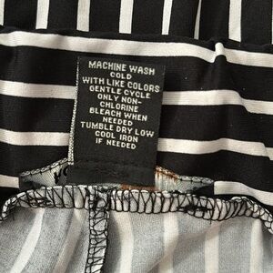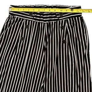 Robert Louis Palazzo Pants, Size PL (See approximate measurements in photos), Black & White Striped. Pull on. Wide leg. Elastic waist stretches to 19.5” lying flat. Very Good Condition. 768