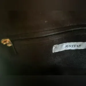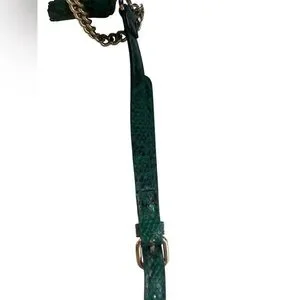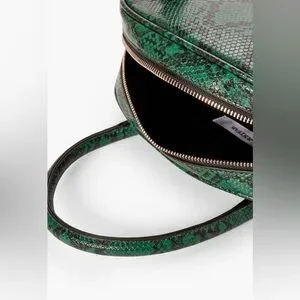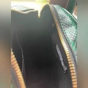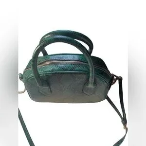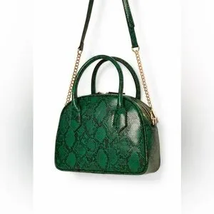 Features 2 interior side pockets, detachable & adjustable strap, two zippers, spacious interior, beautiful snake print design with gold accent