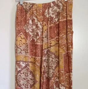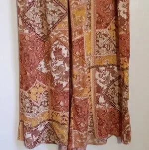 Rip Curl terracotta floral boho wide leg palazzo pants women size medium/large with elastic band in the back of waistline. These are lightweight and flowy. They are tagged as a medium but will fit a large as well. The waist band is super stretchy. Great pre-owned condition with no flaws noted.