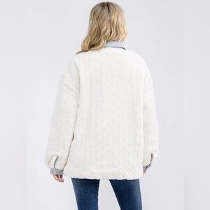 Stay cozy and stylish with this elegant white and gray jacket. Perfect for any occasion.