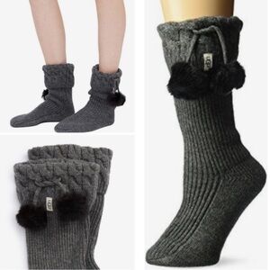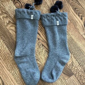 UGG Australia Women’s Rain Boot Socks Pom Pom Gray Heather Shoe Size 5-10 // Sock Size 9-11.
