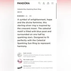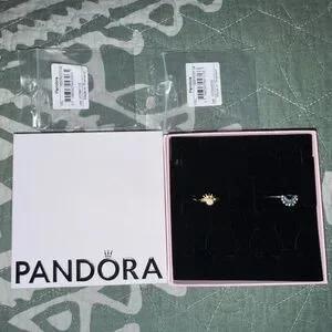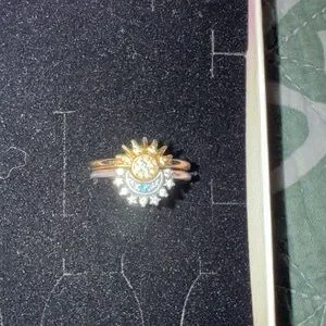 Pandora Gold and Silver Celestial Sun and Moon Ring Set size 6.5