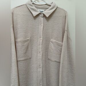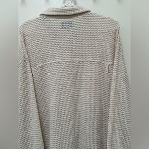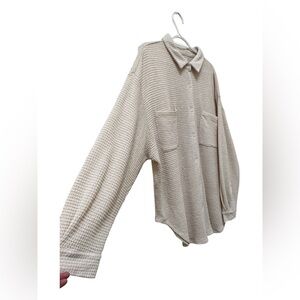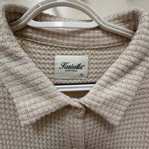 New with tags Kuwalla Tee long sleeve button shirt in size XL with an oversized fit and the colour is like oat. The waffle knit texture, which provides both warmth and breathability, making it suitable for layering or standalone wear. It's a long-sleeve, collared shirt with a button-down front and front chest pockets and very comfortable.