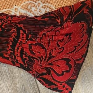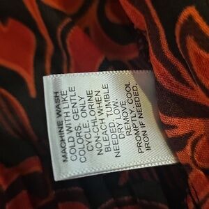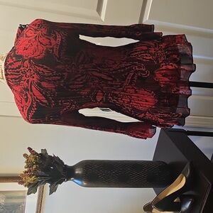 Cato Red and Black V-Neck, Floral Long Sleeve Ruffled Shirt, Indonesia, Size M