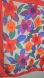 Colorful scarf featuring bold floral patterns with a striking red border. Perfect for adding a pop of color to any outfit.