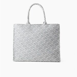 This is a large lined tote bag with an interior pocket. It's made from softly structured 100% cotton twill jacquard with a luxe feel. The woven-in motif was designed in-house and is exclusive to the brand.