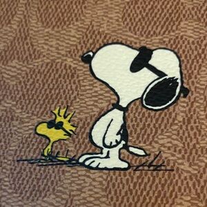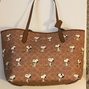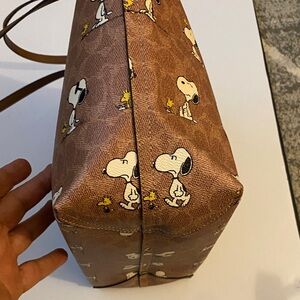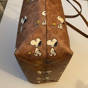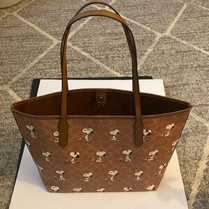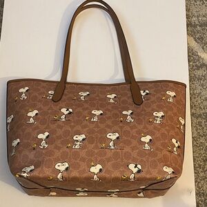 Charming Snoopy print on a Coach tote. Rich brown color. Perfect for everyday use. No callouts.