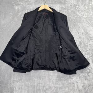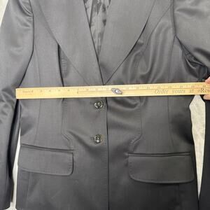 Escada Blazer Womens 42 Black Wool Stretch Classic Two Button Jacket Gold Accent