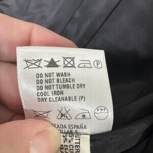 Material tag and care tag included: dry clean only, cool iron, do not bleach or wash