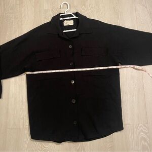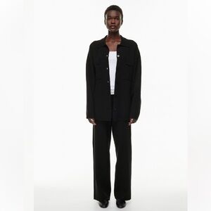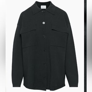 Excellent condition, ladies Aritzia Wilfred Free Ronnie Sweater in the colour black. No rips or stains, and I couldn’t find any pilling - the fabric is pristine!! I’ve only worn it a couple of times, and didn’t realize h til photographing that it’s missing the top button (please see photos). I didn’t notice at all when wearing since I don’t use the top button (nor does the model in the stock photo). Other than that, she’s amazing!! Ladies size small - I’m a lululemon 6/8 and it fits perfectly - please see photos for exact measurements.