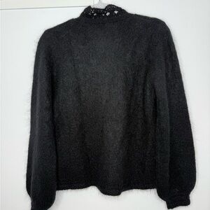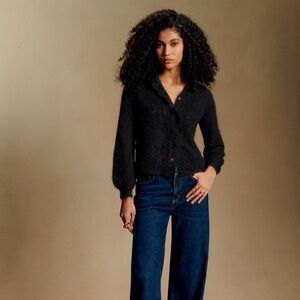 Wool and kid mohair cardigan with long, slightly balloon-like sleeves