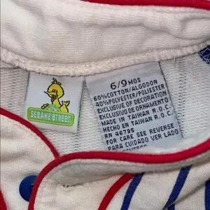 This baby clothing item is a vintage Sesame Street "Grand Slam" romper/shirt featuring Big Bird. The brand is likely Gymboree or another children's clothing manufacturer that produced licensed Sesame Street apparel, as evidenced by similar items found in searches.